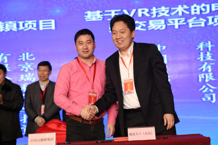 2017年1月15日,以“融合梦想共绘精彩”为主题的北京义乌企业商业年会暨义乌投资环境(北京)推介会在北京世纪金源酒店举行。包括义乌市相关领导、义乌当地知名企业家、在京义乌籍企业家等几百位人员参加了此次盛会。微景天下CEO宁永强受邀出席活动,并代表公司和中国宝娜斯集团有限公司签订了基于VR技术的电子商务交易平台战略框架协议。