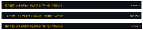 2013、2014还有,就不一一列举了。通产丽星这家公司连续几年都在不断的买银行理财,让人不由不怀疑它发行股票募集资金到底是为了扩大生产,还是为了利用公众资金来吃利息。不管怎样,肯定属于不务正业的公司。