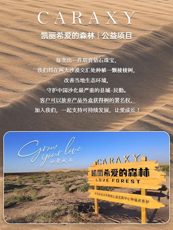 可持续发展已不再是空谈的口号,中国首个培育钻石先驱品牌CARAXY凯丽希用绿色行动证明“让爱成长”的可持续发展的爱情观。