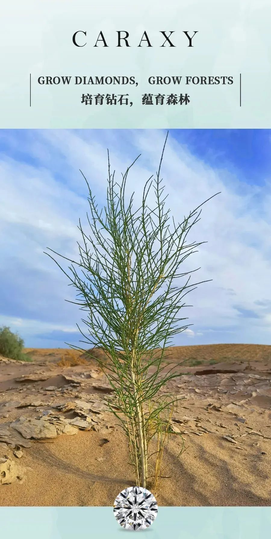 截止目前,凯丽希培育钻石共种植了1500颗梭梭树,并预计在未来实现种植100000颗的目标。