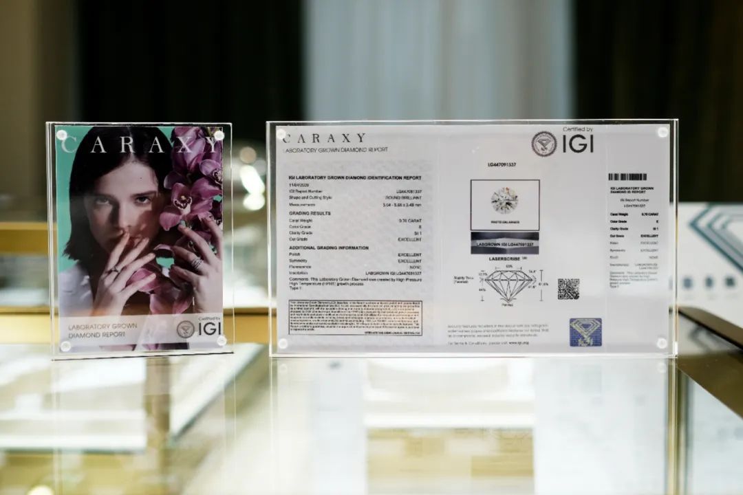 在口碑方面,凯丽希率先与国际宝石学院(IGI)合作,共同推出了CARAXY x IGI联名培育钻石证书,赋予了凯丽希钻石独特的“身份证”,成为了IGI在亚洲的首个联名认证。这不仅是凯丽希品质体系的重要保障,更代表着业内的培育钻石更高标准。
