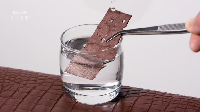 为解决名表用户的鳄鱼皮表带在一定佩戴周期后常见的:不耐汗、发臭、褪色、老化断裂等痛点,即使面对欧美奢侈品鳄鱼皮厂的冷眼和技术卡脖,经过三年零四个月的自强不息,积优成功研发出性能全球领先的鳄鱼皮,性能参数是欧盟标准的10倍,奢侈品集团的3倍。