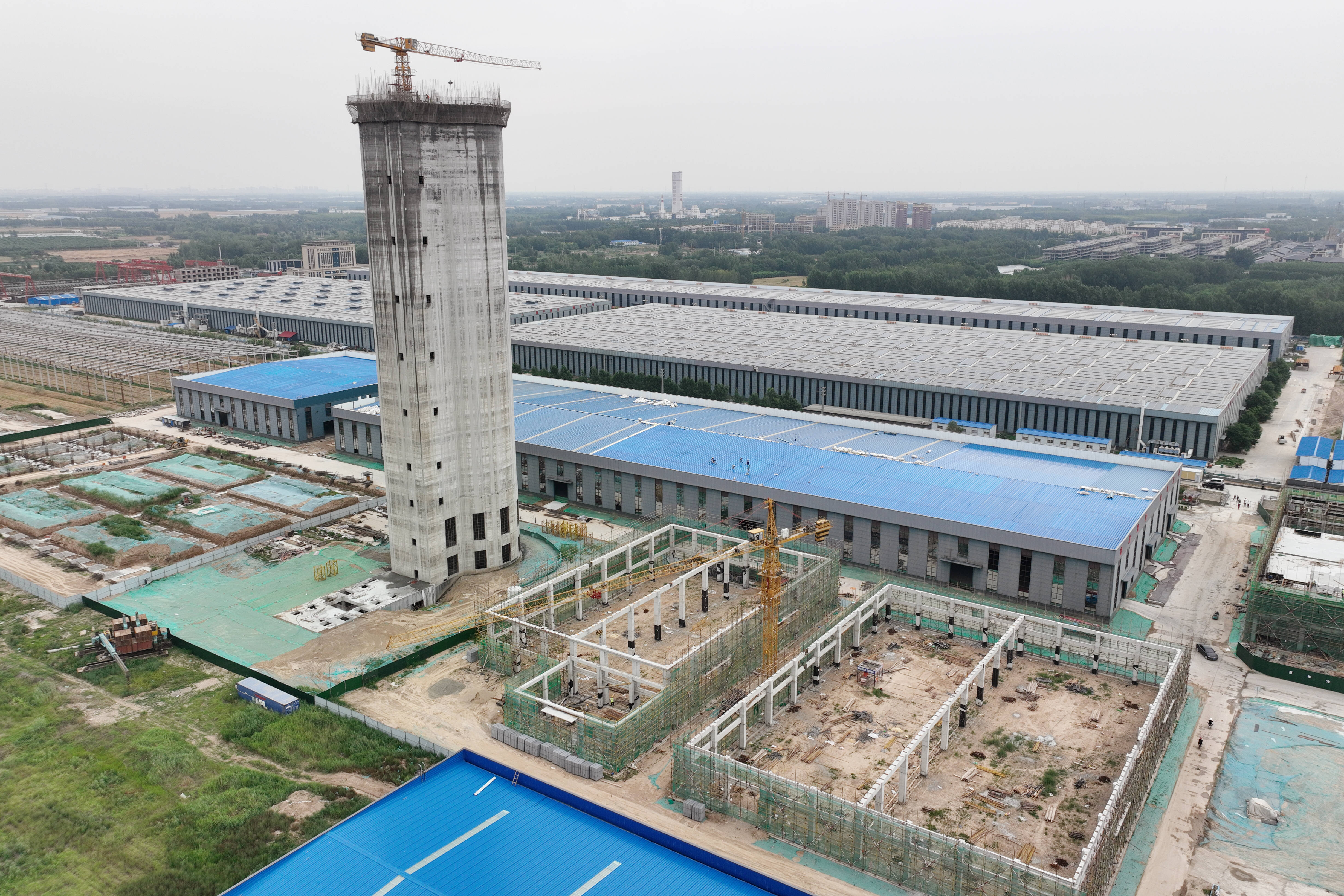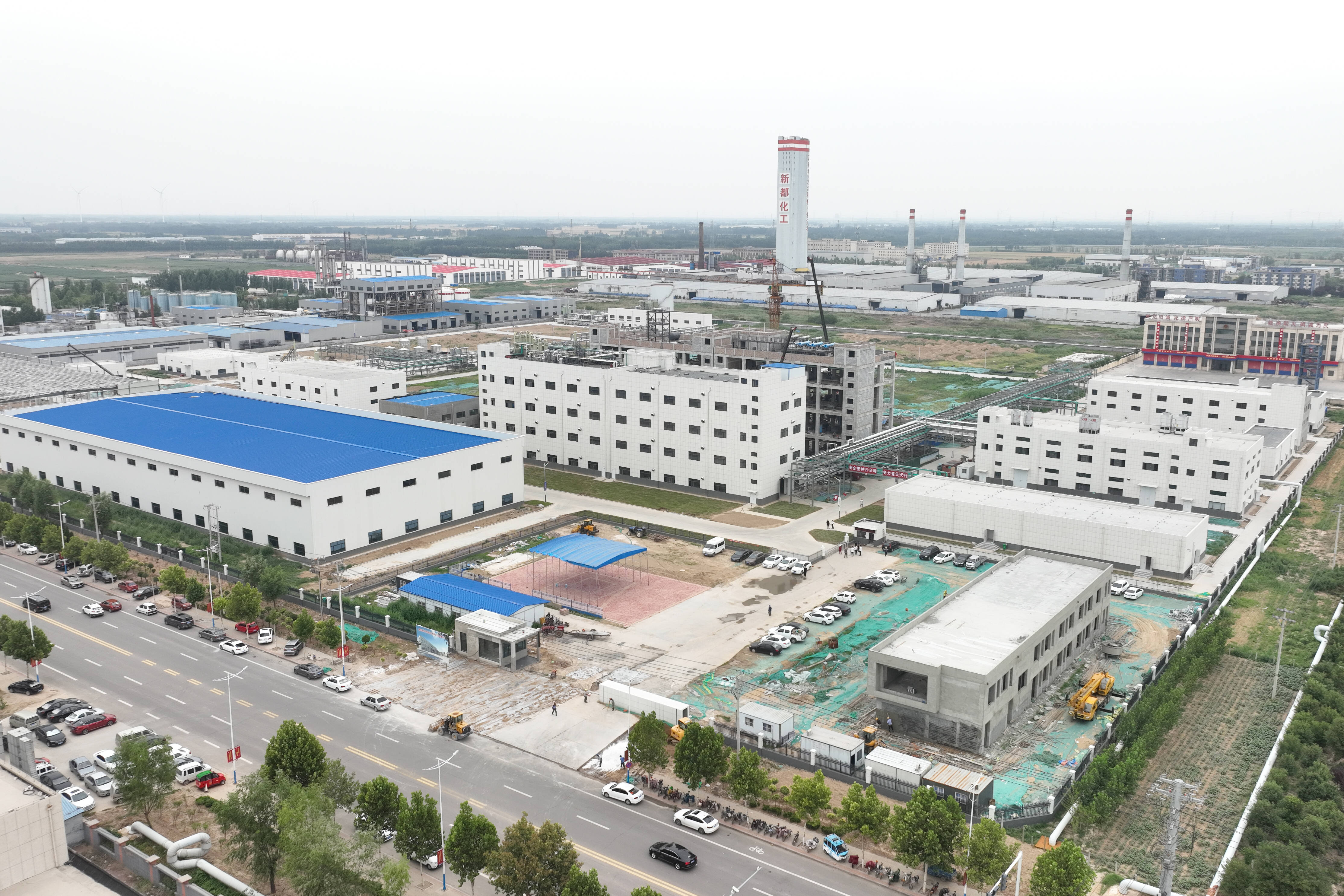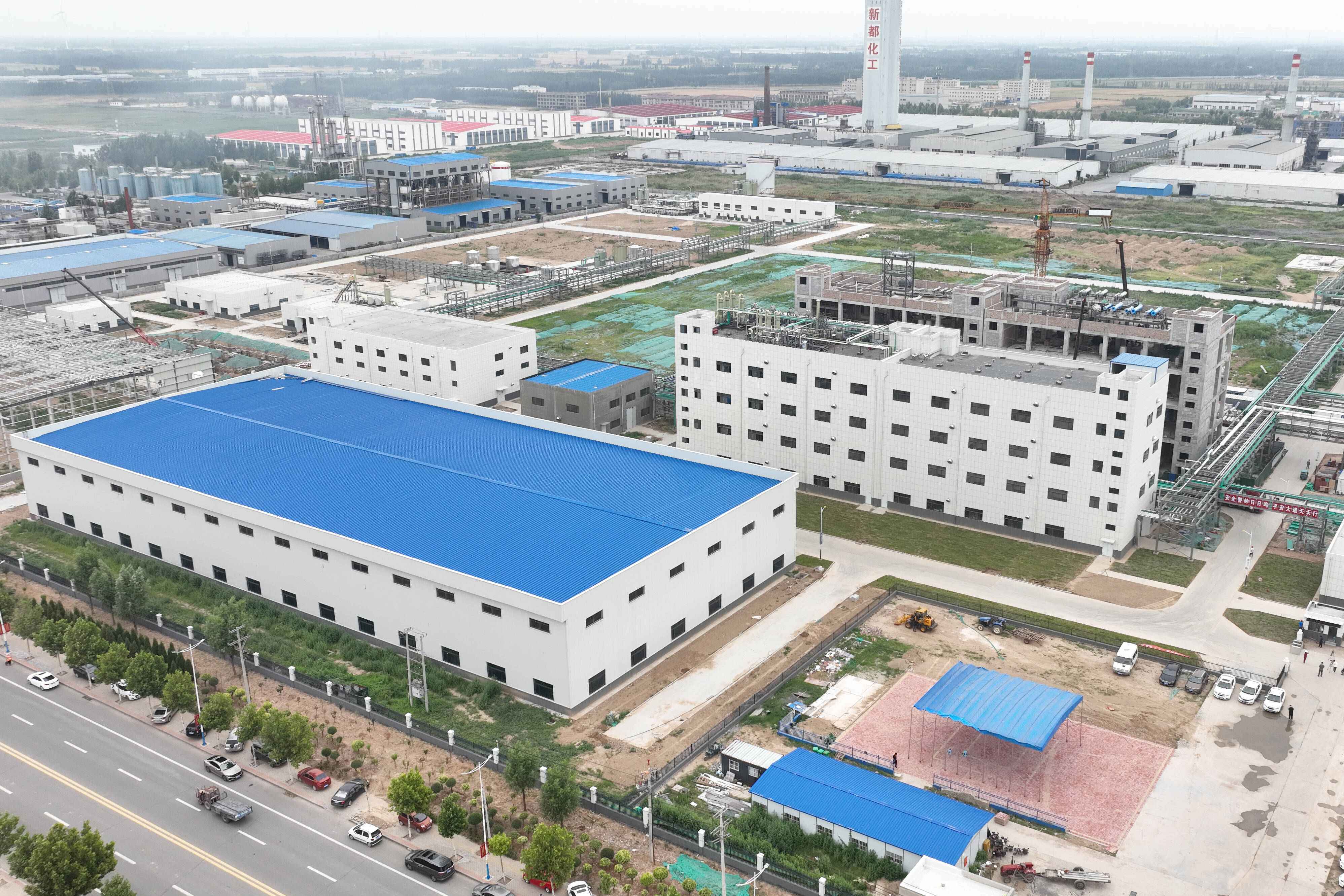 目前,项目研发中心、新型肥料及农药颗粒剂生产车间、仓库完成主体浇筑。预计10月份完成土建施工。