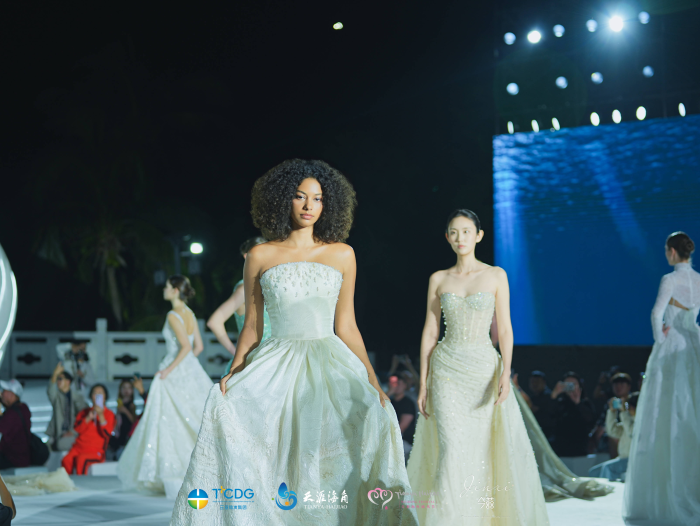 作为当晚的核心环节,本次“天涯时尚秀”力邀国际顶级婚纱礼服品牌TONYWARD进行专场发布。在璀璨灯光与轻柔海风的交织下,模特们身着奢华精致的高级定制礼服款款而行,将品牌的匠心工艺与天涯海角的浪漫意境完美融合,为现场嘉宾带来了一场震撼心灵的视觉盛宴,生动诠释了三亚作为“世界爱情之都”的时尚魅力与独特格调。