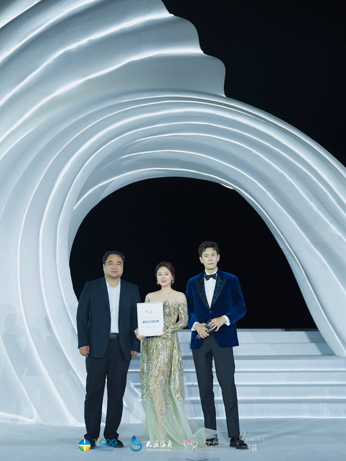 紧随其后的年度颁奖盛典,将现场气氛推向另一个高潮。活动隆重揭晓了本年度三亚婚庆产业的多项重量级荣誉。备受瞩目的“2025-2026年度三亚蜜爱推介大使”由知名艺人经超&李琳共同获得,他们将以爱与榜样之力,向世界传递三亚的浪漫名片。