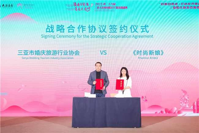 同期,三亚市婚庆旅游行业协会与《时尚新娘》杂志社融媒体签署合作协议。双方将整合行业资源与媒体渠道,在品牌推广、内容共创、潮流引领等方面展开深度协作,共同提升三亚作为国际婚庆旅游目的地的时尚影响力与市场知名度。