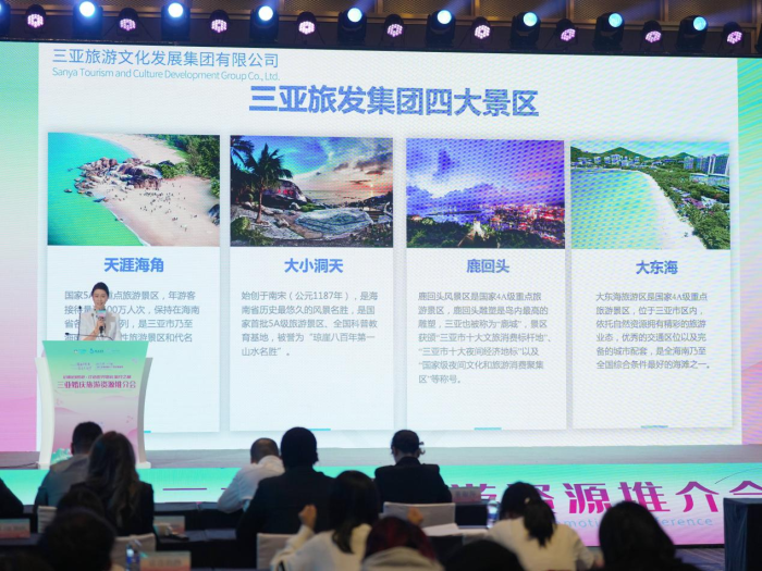 三亚旅发集团推荐官张宇则全面展示了集团旗下多元化核心文旅资源与产业布局。该集团坐拥天涯海角、大小洞天、鹿回头、大东海四大标杆景区,其中天涯海角与大小洞天作为国内知名婚纱蜜月旅拍胜地,已打造上百个网红打卡场景,深受新人青睐。围绕海域海湾资源开发,集团积极推进游船码头建设与运营,拓展内河生态游览、海上丝路主题游船等多元业态,持续丰富滨海旅游体验。此外,集团重点打造“旅文·三亚总部港”综合体,构建“旅游+”产业集聚平台,实现文旅资源与多元产业的深度融合。