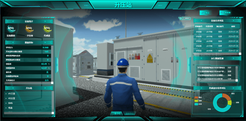 沉浸式决策:通过1:1的数字孪生体,管理者能以第一人称视角审视场站状态,结合二次计算得出的能效分析,做出更精准的调度与维护决策。